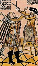 Por ejemplo, los nobles integrantes del Consejo de los boyardos (6) se resistieron también difundiendo caricaturas anónimas como cuando el Zar decretó que todos los miembros de su corte debían afeitarse la generalizada barba, (7) cuestión de gran estima entre los varones de esa época. (8)