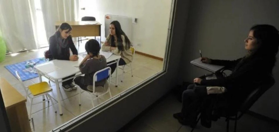 Lo que la víctima manifiesta en esa entrevista es registrado y grabado, al tiempo que es escuchado del otro lado del vidrio espejado por el fiscal, el juez, profesionales en psicología, y eventualmente los abogados de las partes.