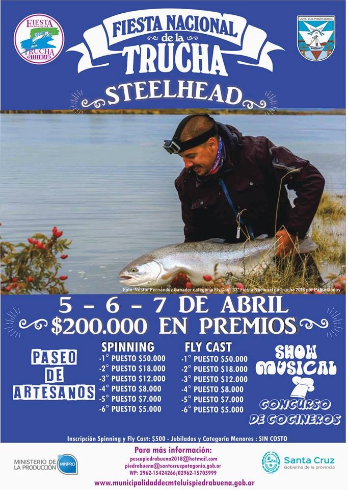 La Fiesta Nacional de la Trucha Steelhead se realizará los días 5, 6 y 7 de abril en la localidad de Comandante Luis Piedra Buena.