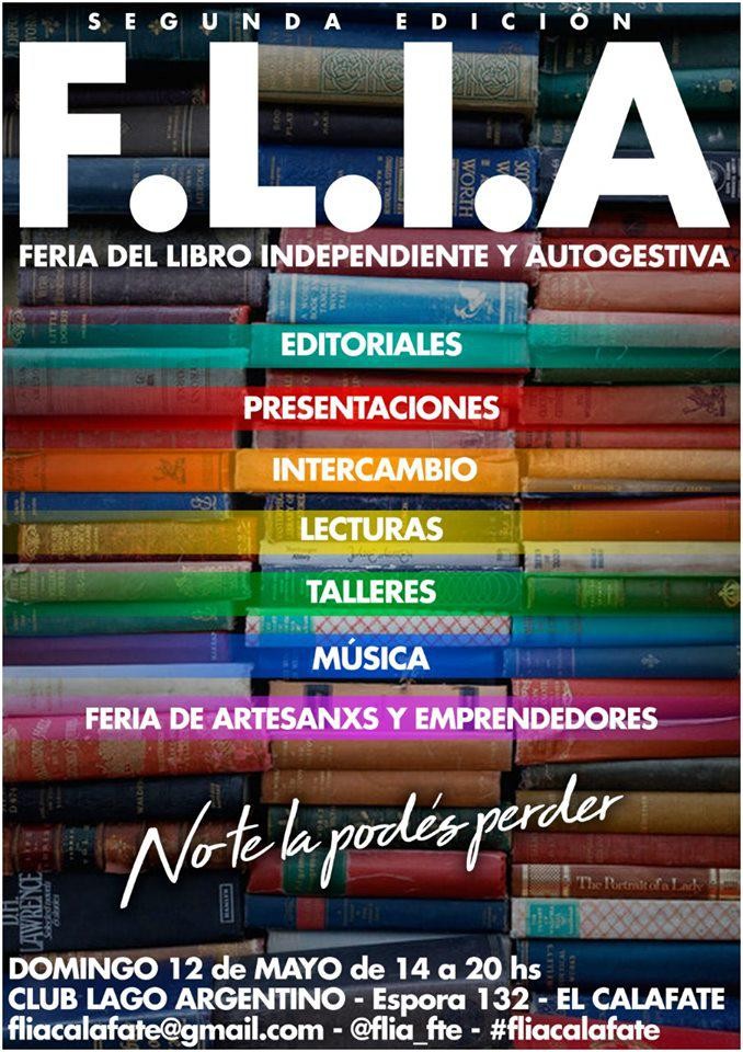 Este domingo 12 de mayo, el Club Lago Argentino (Espora 132) será sede de la segunda edición de la Feria del Libro Independiente y Autogestiva de El Calafate (FLIA).