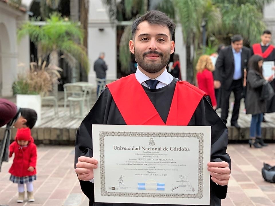 Miembro del cuadro de honor de su promoción, Felipe Mardones se recibió, pero no terminó su formación. “Voy a seguir con posgrados y tratar de profesionalizarme lo más posible. Ahora estoy haciendo un curso en el colegio de abogados. Le tengo ganas a una maestría en Derecho Civil Patrimonial y laboral. También me gusta toda la parte del Derecho Público”, le contó a este portal.
