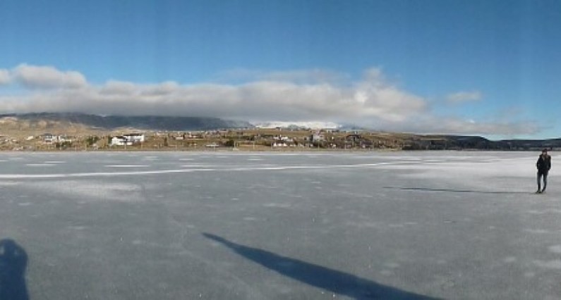La seguidilla de muy bajas temperaturas en El Calafate ha convertido una vez más a la Bahía Redonda en la pista natural de hielo más grande de Sudamérica.