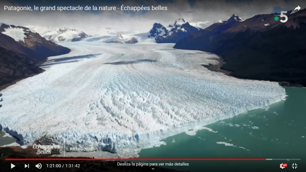 Patagonie, le grand spectacle de la nature (Patagonia, el gran espectáculo de la Naturaleza) este sábado a las 21 de Francia, 17 horas de la Argentina, se pudo ver el programa “Échappées belles” (“Hermosas Escapadas”) por el France 5, que es un canal de televisión público perteneciente al grupo France Télévisions. Fue creado en 1994 y está enfocado en una programación cultural y educativa, con especial atención a los programas divulgativos, los documentales y los espacios de debate.