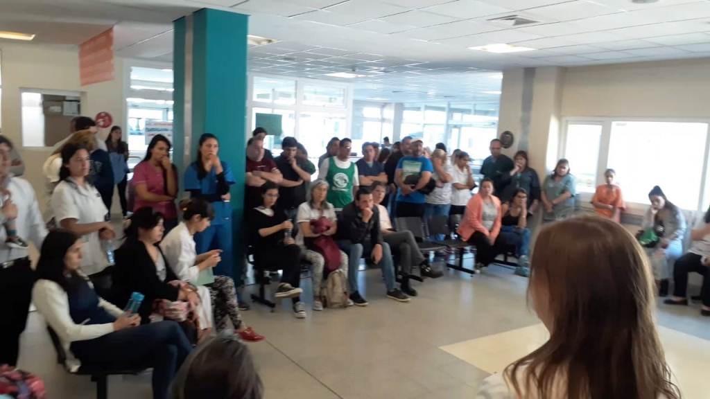 La intención original de ATE era que los funcionarios nacionales vayan a la asamblea de trabajadores que se realiza en hall de acceso al Hospital, y con la presencia de medios de prensa. Sin embargo Medina se opuso terminantemente a esto diciendo que iba a ser una reunión informativa con los empleados, sin medios presentes y en el primer piso.