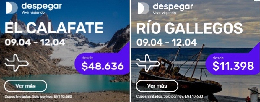 En Semana Santa por ejemplo, una empresa de ventas de pasajes on line promociona vuelos ida y vuelo (Buenos Aires – El Calafate) desde $ 48.636 por persona. Mientras una consulta hecha en la web oficial de Aerolíneas Argentinas, en el fin de semana largo del 9 al 12 de abril, el pasaje “más económico” está por encima de los $54 mil.