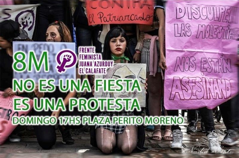 Agrupaciones feministas de El Calafate organizaron actividades conmemorativas al Día Internacional de la Mujer. Encuentro en Plaza Perito Moreno, marcha y película en el Concejo Deliberante.