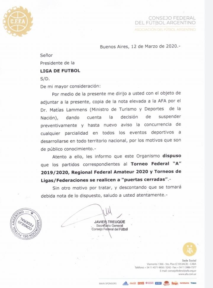NOTA CONSEJO FEDERAL DE FÚTBOL