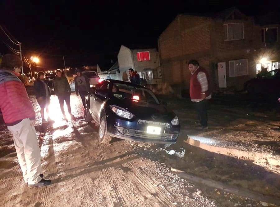 El remis llevaba a un pasajero. El conducto no vio el gran pozo debido a la falta de alumbrado público que hay en ese sector. Después de intentar maniobras para retirarlo del lugar, finalmente se pudo lograr gracias a un vecino solidario que ató una linga al paragolpes trasero de su camioneta y lo sacó a la rastra.