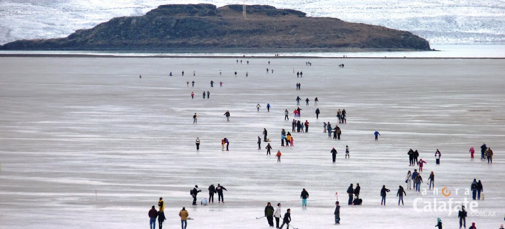 En algunos sectores el espesor de hielo está llegando a los 20 centímetros y la superficie lisa está ideal para la práctica de actividades. Sobre todo en estos días de vacaciones de invierno, tanto para vecinos de El Calafate como para los turistas que nos visitan.